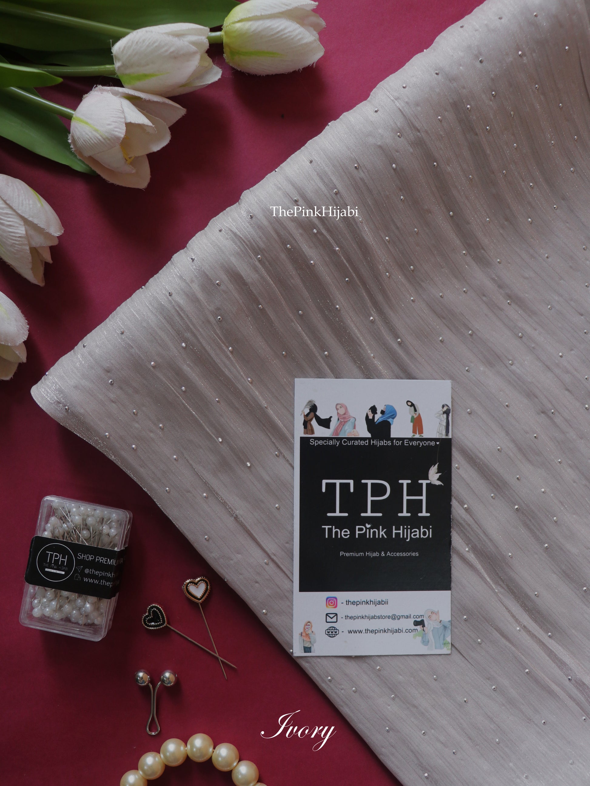 Diamond Organza Hijab – Ivory | Soft Bridal & Party Hijab