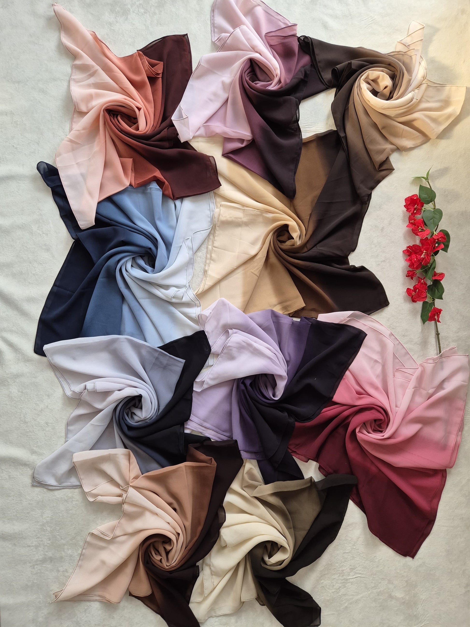 Elevate your everyday elegance with our Ombre Chiffon Hijab – where two tones blend seamlessly for a graceful, effortless look. Made from premium lightweight chiffon, this hijab drapes beautifully and offers a soft, flowy finish. Whether you’re dressing up or keeping it casual, the gentle color gradient adds a unique touch to any outfit.